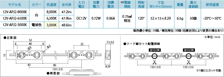 12V-APJ2 12ボルト-エーピージェイ2 ・信頼性とあらゆる環境で使用可能なDC12V・2球モジュール ・最大連結50個 ・1個単位でカットして使用可能 ・看板厚 50mm以上推奨 資料ダウンロード フライヤー 仕様書 取扱説明書 詳細スペック